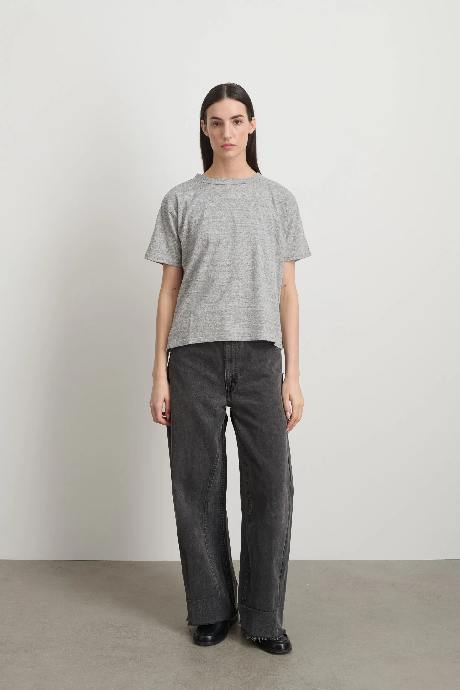 Our best-selling Atlas Tee with an oversized fit, drop shoulder and relaxed sleeve from unique Japanese milled cotton-silk noil track heather jersey.