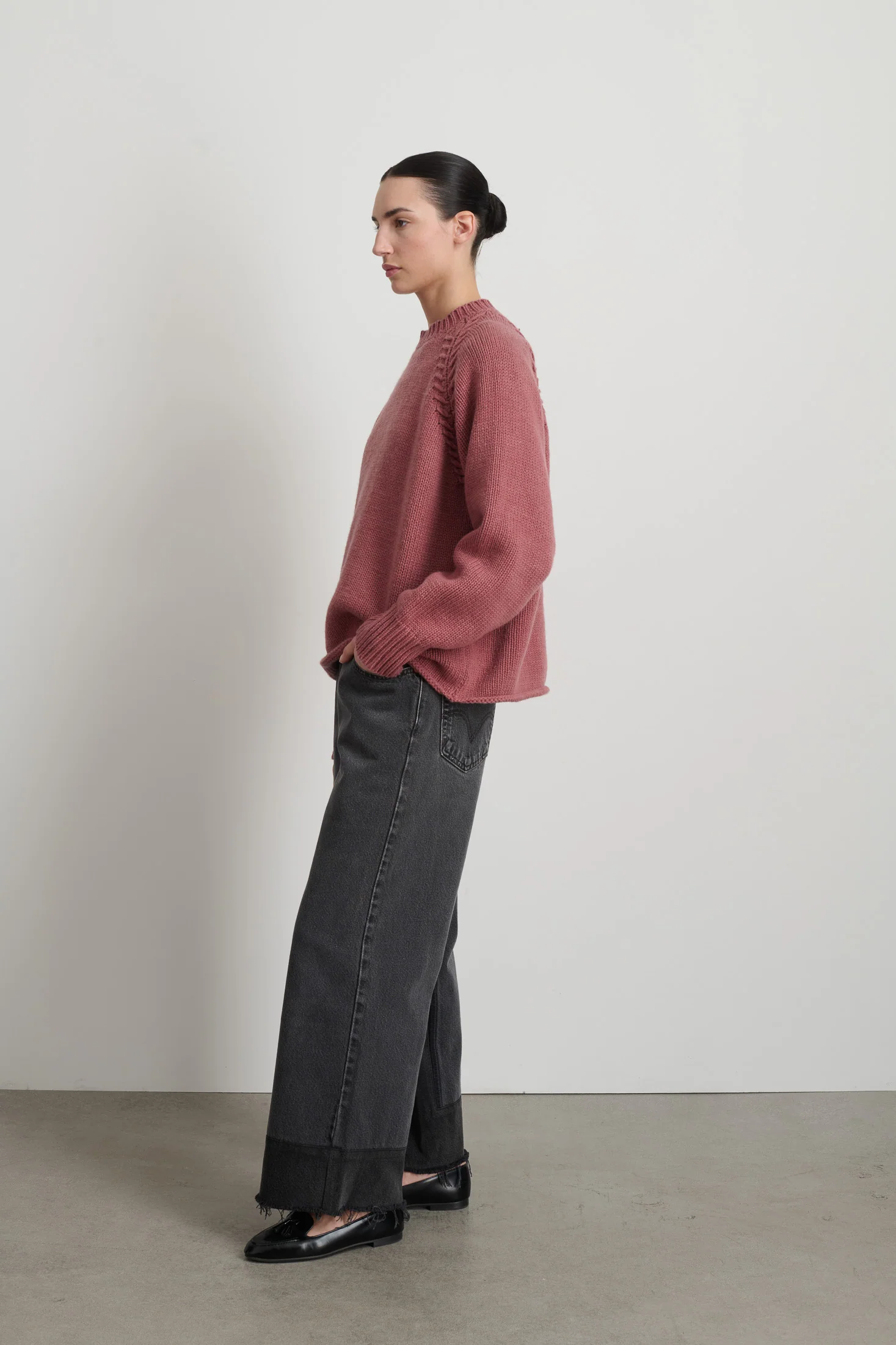 B SIDES Cashmere -- A blend of hand-twisted Scottish lambswool and cashmere yarn. The braided raglan fashioning is unique to B SIDES and a nod to heritage Aran knitwear. An heirloom piece, with gorgeous hand and heft.