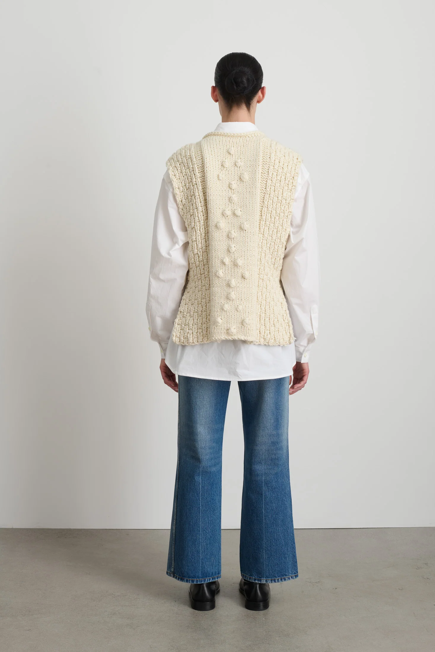B SIDES Hand Knits -- Our Gilet is made from 100% natural Merino Wool sourced from the Shaniko Family of ranchers in the American West. Our RWS-certified natural fiber adopted for its elevated extra long staple and its best practice in animal welfare and land preservation.
